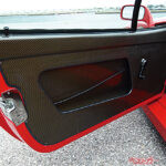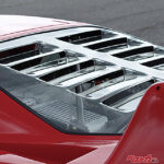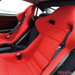 極端に低いボディのドアを開けると、真紅の生地で覆われたカーボンケブラーシェルのフルバケットシートが現われる。1124mmのルーフに身体をかがめて、サベルト製4点式ハーネスを装着。まるで戦闘機に乗り込むかのような緊張感に包まれる。