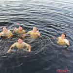 水素サウナを体験し、ユバスキュラ湖に入る中嶋副社長たち。体調は「カンペキ」とのこと