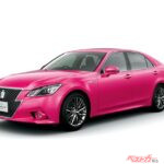 14代目クラウンの衝撃は、エクステリアデザイン以外にもまだある。中でも特に印象が強いのは、2013年7月に登場したピンク色のクラウンだろう。リボーンピンクというショッキングピンクのようなボディカラーをまとったクラウンの登場には、クラウンファンならずとも度肝を抜かれたはず。