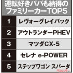 もちろん、ファミリーカーとしては、ミニバンも外せない。4位のセレナe-POWERは、HEVの進化に加え、オーテックスポーツスペックが選べる点を高く評価。唯一となったミニバンコンプリートカーは、ライバルパパにも自慢できる。