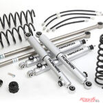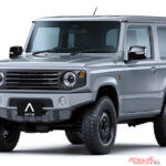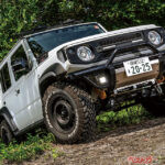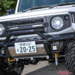 オフロードでのタフな走破性が魅力のジムニーだから、やはりタフでワイルドなスキッドプレートや車高アップサスペンションなどは外せない。20mmアップだったらブレーキホースなどもノーマルで対応でき、見た目のワイルドさも強調できるのでまずはおススメ。