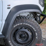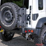 トーヨータイヤの「オープンカントリーR/T」やヨコハマタイヤの「ジオランダーX-AT」などのラギッド系オールテレーンタイヤを履くだけでもずいぶんと雰囲気が変わるし、実際のラフロードでの走破性アップや耐久性向上にもなるのでこれもおススメ。