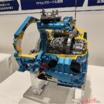 そんな最前線のアイシン製品も垣間見ることができた。ひとつはスズキ初のBEV「eビターラ」用の小型eアクスル。同業他社比で40%小型化したというそのユニットはみるからに小さく、eビターラの精悍なフロントセクションの造形にも一役買っていると思った。