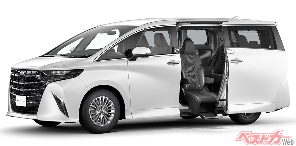 トヨタ アルファード G “サイドリフトアップチルトシート装着車”(ガソリン・2WD/プラチナホワイトパールマイカ)〈オプション装着車〉(内装色:ブラック/2024年12月 PHEV設定時の公式画像より)