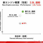スポーツモデルであることを考えれば、GRヤリスやGRカローラに搭載されている最大出力300ps級の1.6L直列3気筒ターボというのも選択肢となるが、このエンジンは、小排気量ゆえに小型かつ軽量で、縦置き化することで後輪駆動にも対応可能というメリットがあるものの、出力重視の特性で燃費性能は芳しくなく、現行GR86の燃費(6速AT車で11.7km/L、6速MT車で11.9km/L)すら下回る可能性が高い。