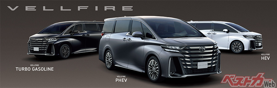 圧倒的存在感 驚速の2.4Lターボはアルファードにない魅力「トヨタ ヴェルファイア」最新型仕様と画像一覧(2025年9月版) 2025年10月7日 / コラム コメントする 0 #トヨタ#ミニバン#価格#PHEV#ヴェルファイア#グレード#サイズ#画像一覧 ■現行型トヨタ ヴェルファイア 画像一覧(2024年12月 PHEV設定時の公式画像より) トヨタ ヴェルファイア Executive Lounge(プラグインハイブリッド・E-Four/プレシャスメタル)〈オプション装着車〉(2024年12月 PHEV設定時の公式画像より) トヨタ ヴェルファイア Executive Lounge(プラグインハイブリッド・E-Four/プレシャスメタル)〈オプション装着車〉(2024年12月 PHEV設定時の公式画像より) トヨタ ヴェルファイア Executive Lounge(プラグインハイブリッド・E-Four/プレシャスメタル)〈オプション装着車〉(内装色:サンセットブラウン/2024年12月 PHEV設定時の公式画像より) トヨタ ヴェルファイア Executive Lounge(プラグインハイブリッド・E-Four/内装色:サンセットブラウン/2024年12月 PHEV設定時の公式画像より) トヨタ ヴェルファイア Executive Lounge(プラグインハイブリッド・E-Four/内装色:サンセットブラウン/2024年12月 PHEV設定時の公式画像より) トヨタ ヴェルファイア Executive Lounge(プラグインハイブリッド・E-Four/プレシャスメタル)〈オプション装着車〉(2024年12月 PHEV設定時の公式画像より) トヨタ ヴェルファイア Executive Lounge(プラグインハイブリッド・E-Four/内装色:サンセットブラウン/2024年12月 PHEV設定時の公式画像より) トヨタ ヴェルファイア 左:Z Premier(ターボガソリン・2WD)、中央:Executive Lounge(プラグインハイブリッド・E-Four)、右奥:Executive Lounge(ハイブリッド・E-Four)〈すべてオプション装着車〉(2024年12月 PHEV設定時の公式画像より) トヨタ ヴェルファイア Executive Lounge(プラグインハイブリッド・E-Four/プレシャスメタル)〈オプション装着車〉(2024年12月 PHEV設定時の公式画像より) トヨタ ヴェルファイア Executive Lounge(プラグインハイブリッド・E-Four/内装色:サンセットブラウン/2024年12月 PHEV設定時の公式画像より) トヨタ ヴェルファイア Executive Lounge(プラグインハイブリッド・E-Four/内装色:サンセットブラウン/2024年12月 PHEV設定時の公式画像より) トヨタ ヴェルファイア Executive Lounge(プラグインハイブリッド・E-Four/内装色:サンセットブラウン/2024年12月 PHEV設定時の公式画像より) トヨタ ヴェルファイア Executive Lounge(プラグインハイブリッド車)ルーフヘッドライニング(ウルトラスエード®/内装色:サンセットブラウン/2024年12月 PHEV設定時の公式画像より) トヨタ ヴェルファイア Executive Lounge(プラグインハイブリッド・E-Four/内装色:ブラック/2024年12月 PHEV設定時の公式画像より) トヨタ ヴェルファイア Executive Lounge(プラグインハイブリッド・E-Four/内装色:ブラック/2024年12月 PHEV設定時の公式画像より) トヨタ ヴェルファイア 左:Z Premier(ターボガソリン・2WD)、中央:Executive Lounge(プラグインハイブリッド・E-Four)、右奥:Executive Lounge(ハイブリッド・E-Four)〈すべてオプション装着車〉(2024年12月 PHEV設定時の公式画像より) 2.5L プラグインハイブリッドシステム(2024年12月 PHEV設定時の公式画像より) 充電ポート(車両側充電装備/2024年12月 PHEV設定時の公式画像より) 225/55 R19タイヤ&19×7Jアルミホイール(シルバースパッタリング塗装/2024年12月 PHEV設定時の公式画像より) Executive Lounge(プラグインハイブリッド車)ルーフヘッドライニング(ウルトラスエード®/2024年12月 PHEV設定時の公式画像より) 2023年6月発売開始時の公式画像より トヨタ ヴェルファイア Z Premier(ターボガソリン・2WD/ブラック/2023年6月発売開始時の公式画像) トヨタ ヴェルファイア Executive Lounge(ハイブリッド・E-Four/プラチナホワイトパールマイカ)〈オプション装着車〉(2023年6月発売開始時の公式画像) トヨタ ヴェルファイア Z Premier(ターボガソリン・2WD/ブラック/2023年6月発売開始時の公式画像) トヨタ ヴェルファイア (左)Executive Lounge(ハイブリッド・E-Four/プラチナホワイトパールマイカ)〈オプション装着車〉、(右)Z Premier(ターボガソリン・2WD/ブラック)〈オプション装着車〉(2023年6月発売開始時の公式画像) トヨタ ヴェルファイア(左)Z Premier(ターボガソリン・2WD/ブラック)〈オプション装着車〉、(右)Executive Lounge(ハイブリッド・E-Four/プラチナホワイトパールマイカ)〈オプション装着車〉(2023年6月発売開始時の公式画像) トヨタ ヴェルファイア Z Premier(ターボガソリン・2WD/内装色:サンセットブラウン/2023年6月発売開始時の公式画像) トヨタ ヴェルファイア Z Premier(ターボガソリン・2WD/内装色:サンセットブラウン/2023年6月発売開始時の公式画像) トヨタ ヴェルファイア Executive Lounge(ハイブリッド・E-Four/プラチナホワイトパールマイカ)〈オプション装着車〉(2023年6月発売開始時の公式画像) トヨタ ヴェルファイア Z Premier(ターボガソリン・2WD/ブラック)〈オプション装着車〉(2023年6月発売開始時の公式画像) トヨタ ヴェルファイア Z Premier(ターボガソリン・2WD/プラチナホワイトパールマイカ)〈オプション装着車〉(