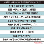 クロカンと呼ばれるモデルが登場した当時、普段使いを考える人はほぼ皆無。世界的にみてもユーザーは限られた層に留まっていた。親しまれるきっかけを作ったのは国産車の台頭。そこから、我々のよく知るSUVブームが始まるのだ!!