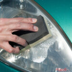 ただし、表面コーティングを磨き落とした面は無防備状態。そのままではすぐに曇ってくるため、ガラス系コーティング剤等の保護剤を塗布する必要がある。