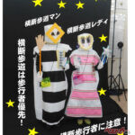 岡山南警察署ではドライバーにウインカーを適正に出すことを促す目的で啓発キャラクターである横断歩道マンや横断歩道レディを制作(出典:岡山県南警察署)