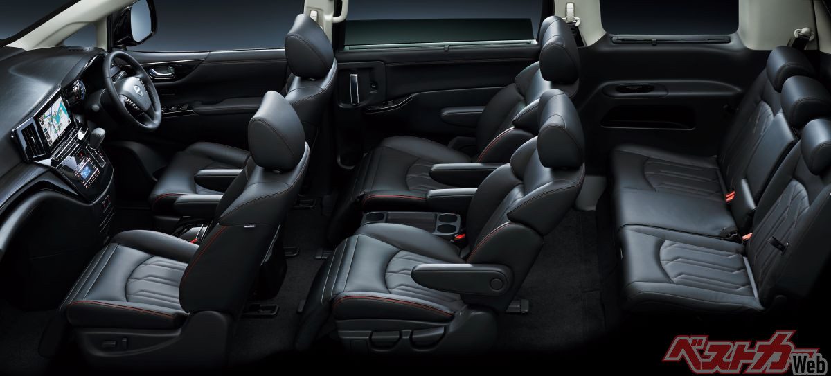 次に快適装備。両車とも電動スライドドアや多彩なシートアレンジ、質感を備えている。中でもエルグランドのシートにはセカンドシートに加え、助手席にもオットマンを装備するトリプルオットマンが特徴。アルファードのトリプルオットマン仕様は中級以上のグレードに限られるが、ベンチュレーション機能が備わるのは魅力だろう。
