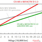 マツダは、欧州の動向に即するように、新世代のSKYACTIV D 3.3では、エンジン単体と電動化などで燃費効率をより高めるだけでなく、HVO100%対応を前提に開発。すでに耐久テストも実施し、欧州では2025年度中のHVO対応を発表する予定だ。