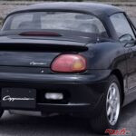 この小さなボディに、フロントエンジン×後輪駆動という、本格的なスポーツモデルらしいパッケージングを詰め込んで登場したカプチーノは、後輪駆動車らしいロングノーズ&ショートデッキフォルムをもち、当時の量産車では珍しい4通り(ハードトップ、Tバールーフ、タルガトップ、フルオープン)のルーフから選択ができたのが特徴。