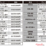 以前は300万円を超える価格帯の主役はクラウンなどの高級セダン、ターボエンジンを搭載するレガシィツーリングワゴンのようなスポーツモデルだった。しかし今はクルマが全般的に値上げされ、ミドルサイズカーの中級グレードなどが中心になる。