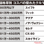 メーカーやカテゴリーを問わず、「予算のみ」でクルマを選ぶ……他記事にて価格帯別にオススメ車を選んできたが、条件をさらにひとつだけ加えると、どのクルマがオススメだろうか? 価格帯別に各条件のオススメ車をみてみよう。