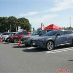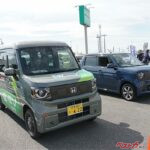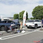 オープンの10時少し前に現地に着くと、駐車場の一角にノボリがたなびき、すでにクルマ好きと思われる人たちが興味深そうにクルマを眺めている。ブースを構えたのは地元スバルにトヨタ、日産、ホンダ、ダイハツ、BYDという6社の販売ディーラー(スバルは群馬製作所も参加)だが、タイヤ無料点検サービスという形でミシュランも加わる。