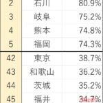 都道府県別では、長野県がもっとも高くて87.0%、2位が石川県(80.9%)、3位が岐阜県(75.2%)と上位県では高い停止率であった一方、もっとも低かった富山県(31.6%)では約3割しか止まっていない、という結果に。東京都も38.7%と約4割しか停止していませんでした。