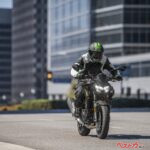 さらにZシリーズの象徴である「Sugomi(凄み)」デザインは、Z400でも健在だ。低く構えたフロントから高く跳ね上がるテールへと流れるシルエットが、まるで獲物を狙う肉食獣のような緊張感を演出。