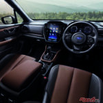 新型フォレスターのインテリア。低いウィンドウラインや、Aピラー根元の三角窓、ドア付けサイドミラーなど、運転時の視界が素晴らしくよいところは歴代モデル共通の強み