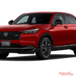 人気のコンパクトSUV、ホンダ ヴェゼルが、一部改良と同時に新グレード「e:HEV RS」を追加。初代ヴェゼルにも設定されていたRSだが、現行型では4WDにもRSグレードを設定。外装各部に専用パーツを使用しスタイリッシュに仕上がっている。