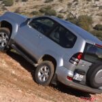 5ドアプラドの最小回転半径は5.7m、対してショートの最小回転半径は5.1mとなる。また、対地障害角はアプローチアングルこそ両者同値だが、ランプブレークオーバーアングルはショートの方が3度大きい32度となり、ディパーチャーアングルも3度深い28度だ。モーグル地帯の走行では、ショートボディの方が、圧倒的に走破性が高くなる。