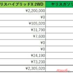 しかしながら、ハイブリッド車は車両価格が高価。ヤリスの場合は30万円ほどハイブリッド車のほうが価格は高く、総合するとどちらがリーズナブルとなるのかは微妙なトコロ。