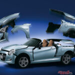 搭載するのは659ccの4気筒DOHCツインスクロールターボ(64ps)で、5速MTと4速ATを設定した。駆動方式はFFだ。凝った塗装も評判となっている。9月にはディタッチャブルトップが加わった。