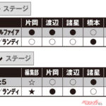 (1)ファーストステージで2位と3位が引き分けた場合(4人の勝敗判定が2対2になった場合)は2位のクルマがファイナルステージに進出となる。