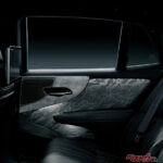 全身を漆黒で包み、見る者すべてを圧倒する存在感を放つ外観。また、内装には漆芸家・服部一齋氏による漆蒔絵と螺鈿を用いた“時つ風”モチーフ、川島織物セルコン製の“朝凪”を表すフロアマットなど、日本の伝統工芸が息づいている。