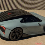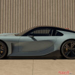 パワートレーンは、分厚いフロア下にバッテリーを搭載したBEVと見るのが妥当だが、前輪アクスルとバルクヘッドの距離が長く、ボンネットフードの厚さなどから縦置きV8エンジン+トランスアクスルも搭載できそうだ。