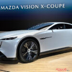 ビジョン クロスクーペは、魂動デザインをさらに進化させたスポーツクーペ。最大の注目はロータリーエンジンを搭載したコンセプトカーである点だ。