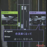 はたまた強引に割り込んでくる車両あれば高機能ADASで減速。ドライバーがイラッと感情的になることを防ぐため、やさしい声質で今起きていることの“解説”をしてくれる。例えば「合流車くるって」といった音声が流れる。