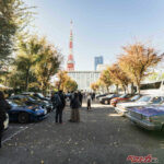 秋風が吹くたびに漂う銀杏の香り。同じくして舞う枯葉たち。羽織っている薄手の上着がちょうどいい気候。雲ひとつない東京タワーが映える芝公園には、ネオクラシックカーからひと昔前の国産・輸入車とジャンルを問わないモデルたちが、静かに鼻先を揃えていた。