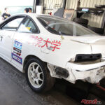 「部車も見た目から入るのが自動車部のポリシーです。2025年の学連ジムカーナに使用したインテグラタイプRは、できるだけキャンバーをつけ、ドリ車のようにしました。