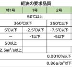 軽油の最も重要な性状は“流動点”であり、JIS規格(JIS K 2204)ではこの流動点の違いによって、特1号から特3号まで全5種類に分類されている。