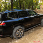 ホイールベースはランクルより225mmも長い3075mmとしながらも、アプローチアングルをはじめとする数値はランクル300超えを宣言。エアサスを使い車高を上下することでホイールベースが長くても悪路を走れるようにしたことがポイント。四輪独立懸架としたところもランクルとは違う。