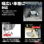 対応車種が幅広いのも嬉しいポイントだ。ブレーキペダルと床の間の距離が10〜16cm、ブレーキペダルロッド幅が0.5〜1.5cmの範囲内であれば取り付け可能で、一般乗用車はもちろん、軽自動車にも使用できる汎用モデルとなっている。