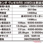 ●ホンダ ヴェゼルRS(4WD)主要諸元