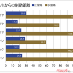 その結果、ノーマルタイヤはスタッドレスタイヤと比べて制動距離が大幅に長く、圧雪路では約1.7倍もの差がついたことが確認されている。