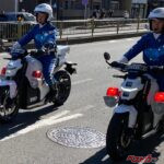 軽快に走り去る選手を先導する2台の白バイだが、エンジン音がまったくなし。「ん?」と思ったら、ホンダ初の電動スポーツバイク「WN7」の白バイ仕様だッ!