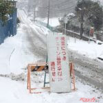 そのため、(単に積雪のある道路を走行するだけであれば滑り止めの措置を講じている状態であるため、問題ないと思われますが)大雪特別警報や大雪に対する緊急発表が行われるような異例の降雪があるときに実施される「チェーン規制」が敷かれている区間において、(この場合、スタッドレスタイヤを装着しているクルマであってもチェーンを装着していなければ通行することはできませんが)万が一、チェーン未装着のまま通行してしまうと、道路交通法のほか、道路法違反(車両通行止め区間を通行した扱いとなる)に問われる可能性があります。