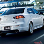 2008年登場の三菱 ギャランフォルティス ラリーアート。ランエボのようなAYCは持たないが駆動方式は4WDを採用する
