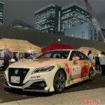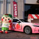 いちごミルクのような淡い色合いに包まれたクラウン。そのインパクトから今回が初登場と思いきや、実は2019年に初代、2020年に2代目が存在しており、今回で3代目となる。いずれも栃木県の名産であるいちごをPRするために製作され、県外でのトップセールスなどにも投入されてきた実力派プロモーションカーである。