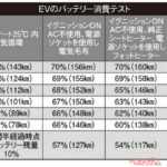 EVはガソリン車と異なり、暖房に電力を使うため立ち往生時のバッテリー消費が大きな課題となる。EVは暖房を使うと電力を消費し、その分航続可能距離が目減りする。