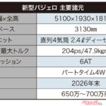 ●新型三菱 パジェロ 主要諸元