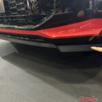 ラジエーターサポートメンバー付近に備わるのは、ヤマハ発動機製のパフォーマンスダンパー。ボディの微小な変形や振動を減衰し、上質な乗り心地と優れた操縦安定性を実現する。会場内では装着有無による振動の違いを体感できたが、装着した状態では打撃音が瞬時に収束し、減衰効果の高さを確認できた。