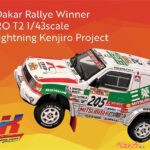 ひとつは1997年ダカールラリーで総合優勝を果たしたパジェロT2。日本人初のダカールウィナーという歴史的快挙を成し遂げたマシンで、迫力あるボディ形状と実戦の雰囲気をそのまま閉じ込めた仕上がりとなっている。