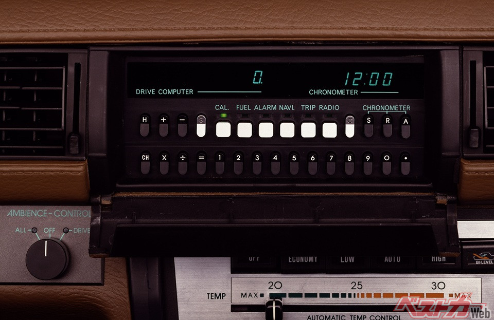 今ではスマートフォンにも電卓機能が備わり、手元で使える電卓の需要も低下しているが、バブル時代には一部のクルマにも電卓が搭載されていた。