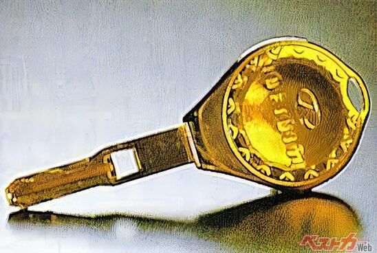バブル景気を象徴するような黄金のキーの価格は52万円! この時代の日本がいかに浮かれていたのかが想像できる。