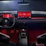 リアスタイルも、角型四灯のLEDテールランプやリアハッチの「GTI」ロゴと「VW」のレッドバッヂが印象的。ルーフスポイラーやディフューザー風の造形によって、強烈なダウンフォースの発生を予感させるが、過度な演出はなく、面構成とプロポーションで走りを表現。これらはGTIの文脈に沿ったアプローチであり、POLOやGOLFでもない、電動時代のコンパクトGTIを再定義しようとする姿勢がうかがえる。