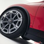 サイドビューは、凝縮感のあるプロポーションが特徴で、張り出した前後フェンダーと新デザインの20インチ大径ホイールが視覚的な安定感を生み、BEV専用プラットフォームによる低重心設計からくる低く構えたスタンスも相まって、スポーツハッチバックとして見事なデザインとなっている。後席用のアウタードアハンドルは、Cピラーデザインに隠されており、3ドアハッチバック風に見せる演出もスタイリッシュだ。